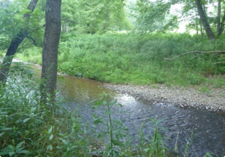 A forest buffer along Back Creek helps cool the stream, prevent erosion, and filter polluted runoff.