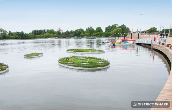 The District’s largest waterfront development project, The Wharf, was completed in 2017 with sea level rise in mind. Located on the Southwest DC waterfront, The Wharf has a gigantic underground cistern that traps floodwaters, and has raised water pumps and generators for electricity. The water can then be pumped to the top of buildings to power turbines, generating clean energy which helps reduce emissions. Projects like this can be a model of working responsibly with nature, but more needs to be done to ensure river-friendly and mixed-use neighborhoods are equitable and accessible to everyone in our community.